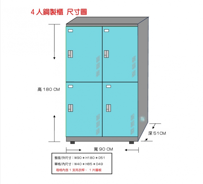 4人鋼製櫃-掛鎖